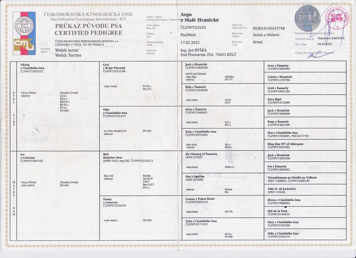 | Datum | Výstava | Rozhodčí | Třída | Ocenění |