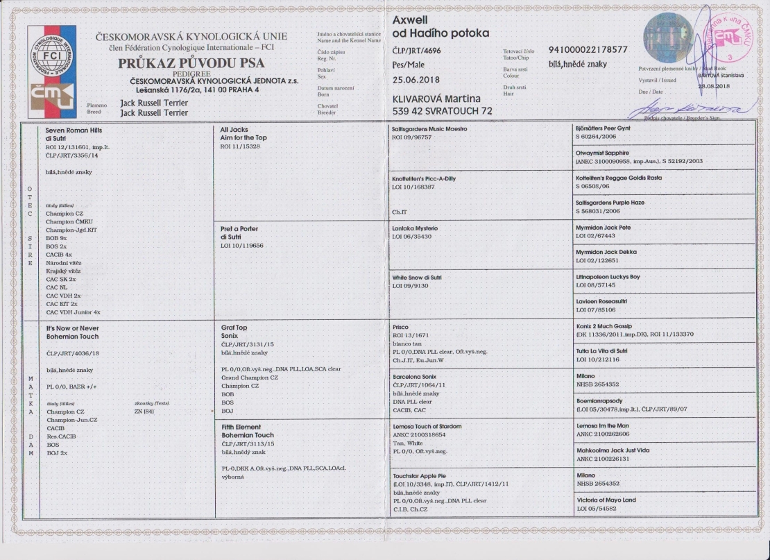 | 01.02.2020 | Mezinárodní (CACIB) Brno/CZ | Magdalena Świetoń/PL | pracovní | V1, CAC, res. CACIB /5 b. |