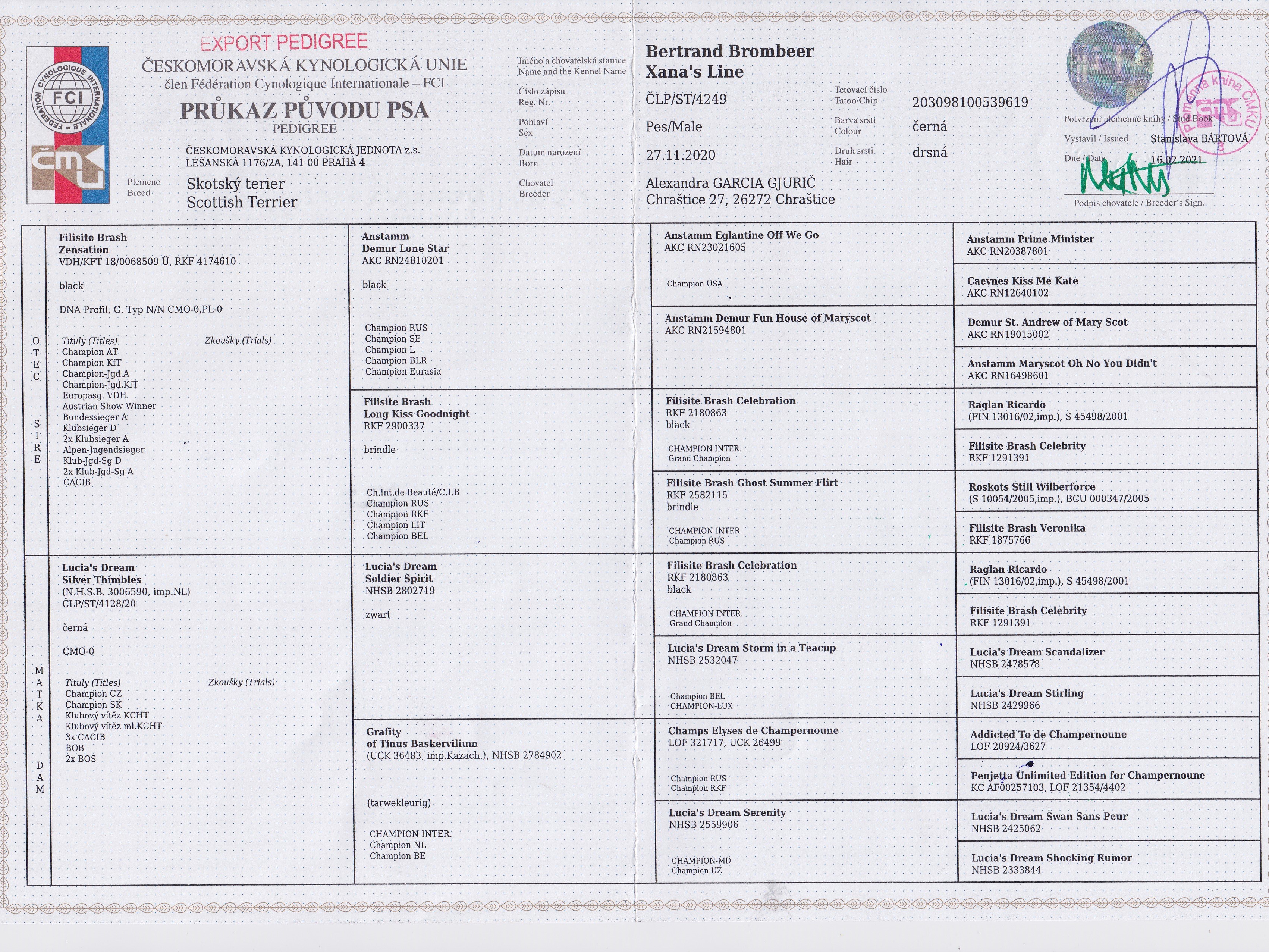 | 26.04.2025 | Mezinárodní (CACIB) České Budějovice/ | Alexandra Grygarová/CZ | šampionů | V1, CAC, CACIB, BOS /9 b. |