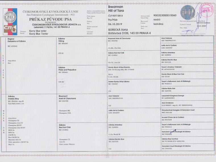 | 04.06.2021 | Národní (CAC) Brno/CZ | Vladimíra Tichá/CZ | mezitřída | V1, CAC, Národní vítěz, BOB /10 b. |