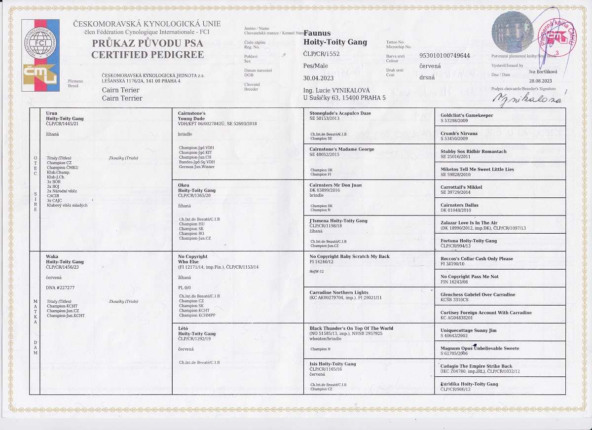 | 03.08.2024 | Oblastní klubová Bordovice/CZ | Philip O'Brien/IRL | mezitřída | V1, Vítěz třídy, CC /4 b. |