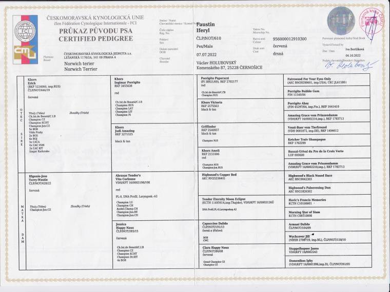 | 02.12.2023 | Národní (CAC) Brno/CZ | Pavol Seman/SK | mladých | V1, CAJC, BOJ /6 b. |