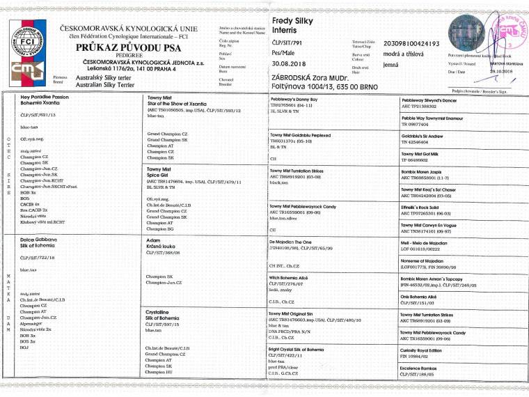 CAJC, BOJ, Vítěz třídy, CC, 6x CAC, Krajský vítěz, ChČR, Klubový šampion, 4x CACIB,BOS, 2x BOB, Vítěz speciální výstavy. C.I.B