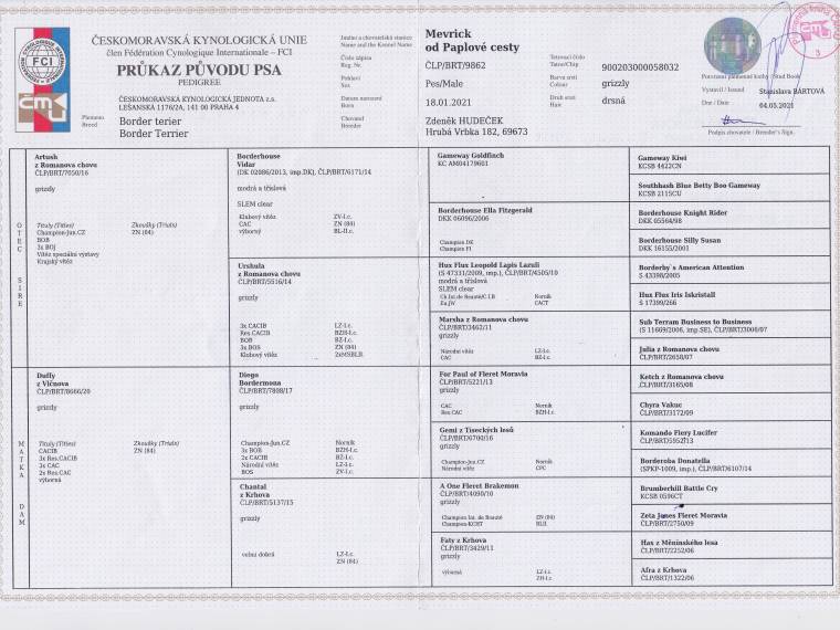 | 12.06.2022 | Speciální Hněvkovice/CZ | Liz Barrett/UK | mezitřída | V1, CAC, CC /4 b. |