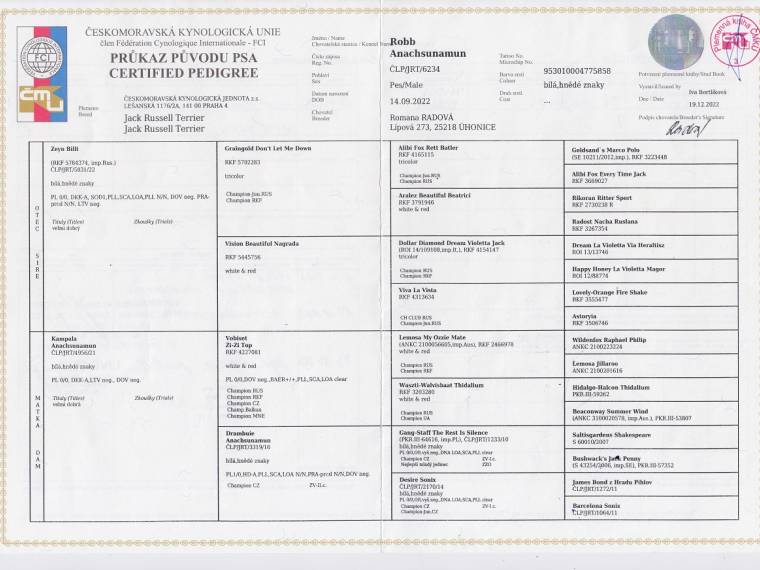 | 27.05.2023 | Mezinárodní (CACIB) Litoměřice/CZ | Iveta Nováková/CZ | dorostu | VN1 |
